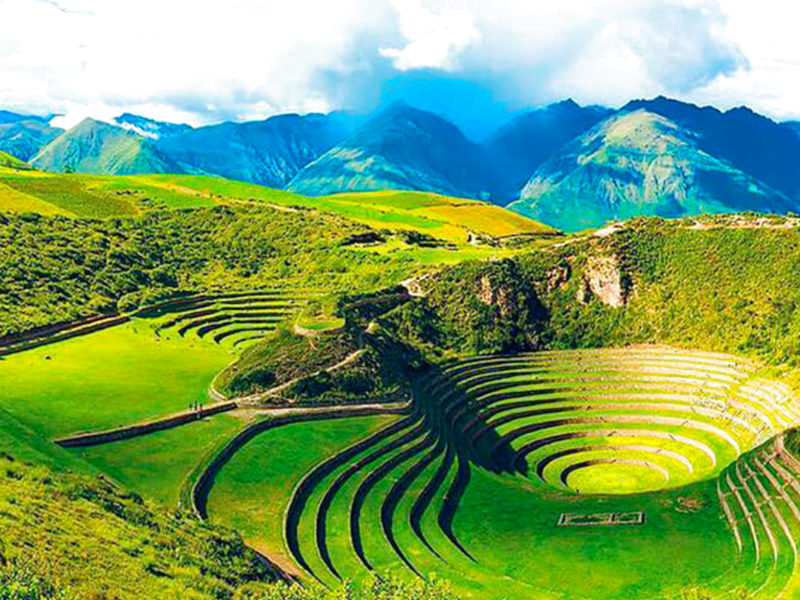 Continuaremos con nuestro viaje y nos dirigiremos a los famosos ANDENES CIRCULARES DE MORAY (3,510 msnm) este lugar era posiblemente un centro de investigación agrícola inca donde se llevaron a cabo diferentes experimentos de cultivo, usaron los microclimas que se formaban gracias a la disposición de sus andenes, este lugar posiblemente vio la evolución y el cambio genético de diferentes productos andinos.